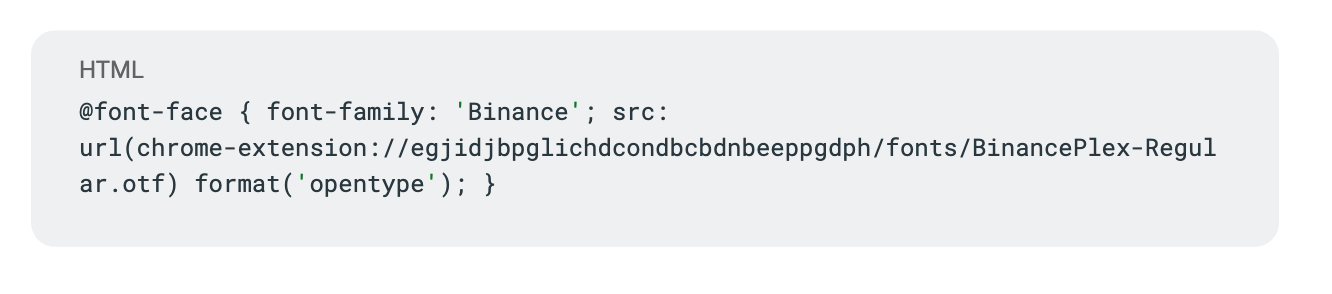 Figure: CSS from the fake Trust Wallet extension loading a Binance font – indicating the extension is active on the page