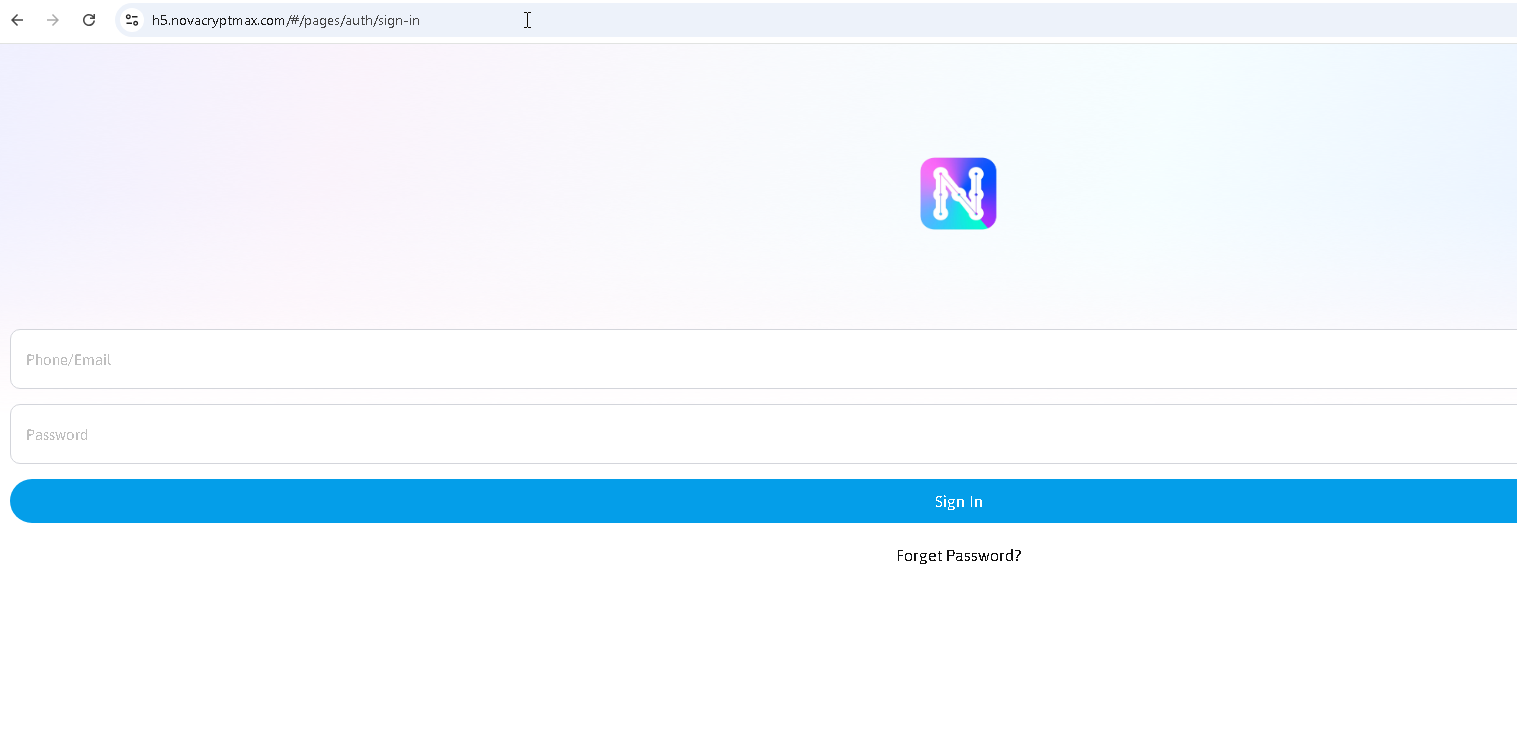 - URL = https://h5.novacryptmax[.]com/#/pages/auth/sign-in – The crux of the scam: this is the URL that the WebClip opens. It’s a fake login page on a domain (novacryptmax[.]com) that appears to be related to Novacrypt but is entirely under the scammer’s control.