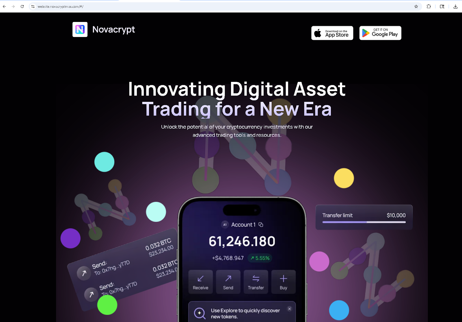 googleplay.nova-reviews[.]com | Domain | Fake Google Play link used on Novacrypt site (intended to target Android users) |