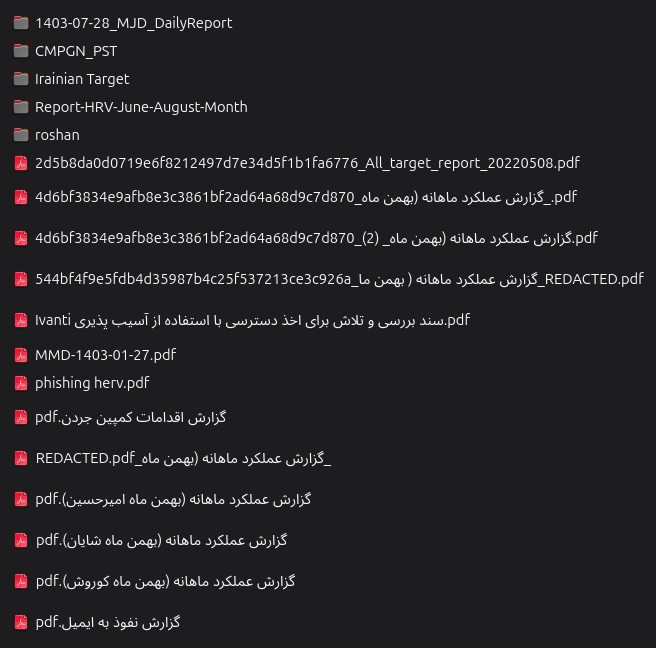 Operating under the guidance of the IRGC Counterintelligence Division, Rahrovi’s APT has expanded its mission set beyond foreign espionage. Internal communications and extracted documents show domestic surveillance of Iranian nationals deemed “regime opponents,” both inside and outside Iran. This dual focus, external intelligence collection and internal repression, typifies Iran’s fusion of SIGINT and HUMINT operations, where cyber units act as both offensive tools abroad and internal security enforcers at home.