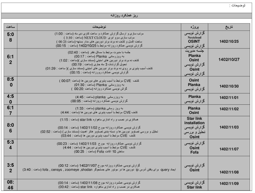 The internal documentation reveals a structured ecosystem of named and numbered operators functioning under a disciplined command hierarchy. Personnel are consistently identified by a mix of professional titles, initials, and numeric designations, reflecting both bureaucratic formality and operational compartmentalization. Each name corresponds to a defined functional lane – engineering, exploitation, analytics, or administration — suggesting a deliberate division of labor designed to ensure continuity and accountability across campaigns. The repeated use of the honorific “Engineer” (مهندس) underscores the technical stature and formal employment status of several individuals, while numeric “Operator” tags indicate pseudonymous, task-based identities. Collectively, these records demonstrate that the unit operates as an organized workforce rather than an ad hoc hacker collective, with performance tracked, reviewed, and signed off by supervisors in a manner analogous to military or intelligence command structures.