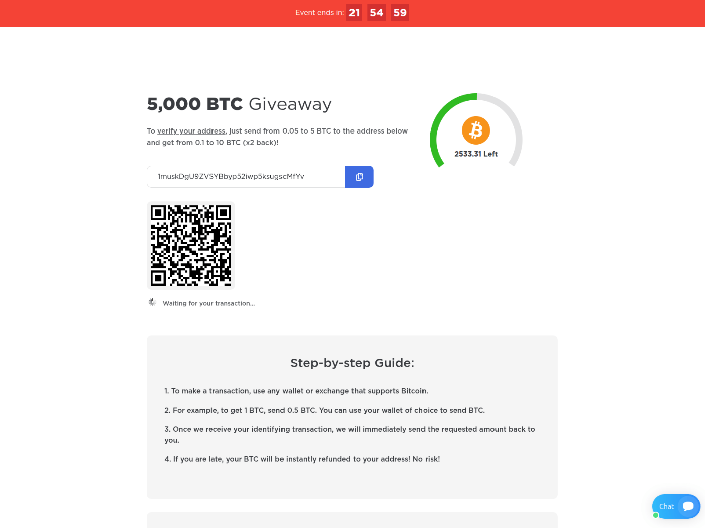 These sites mimic a crypto exchange giveaway, displaying Elon Musk and/or Donald Trump branding. Victims are told to send crypto to receive double back.