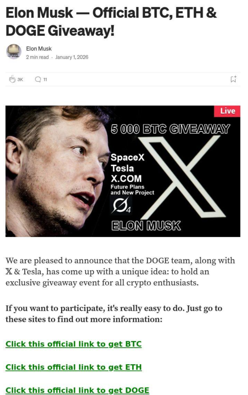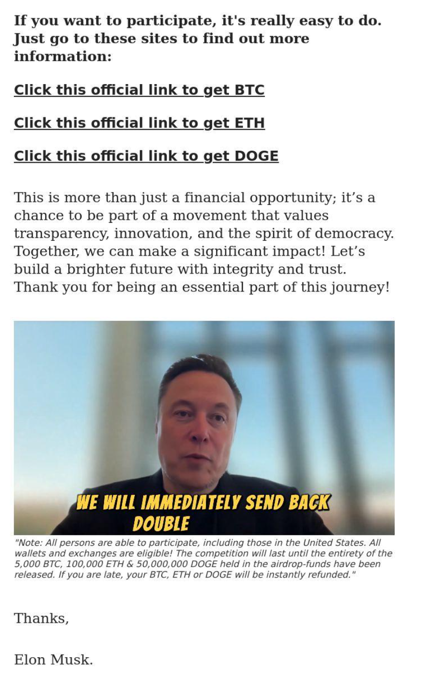 - Elon Musk — Official BTC, ETH & DOGE Giveaway!